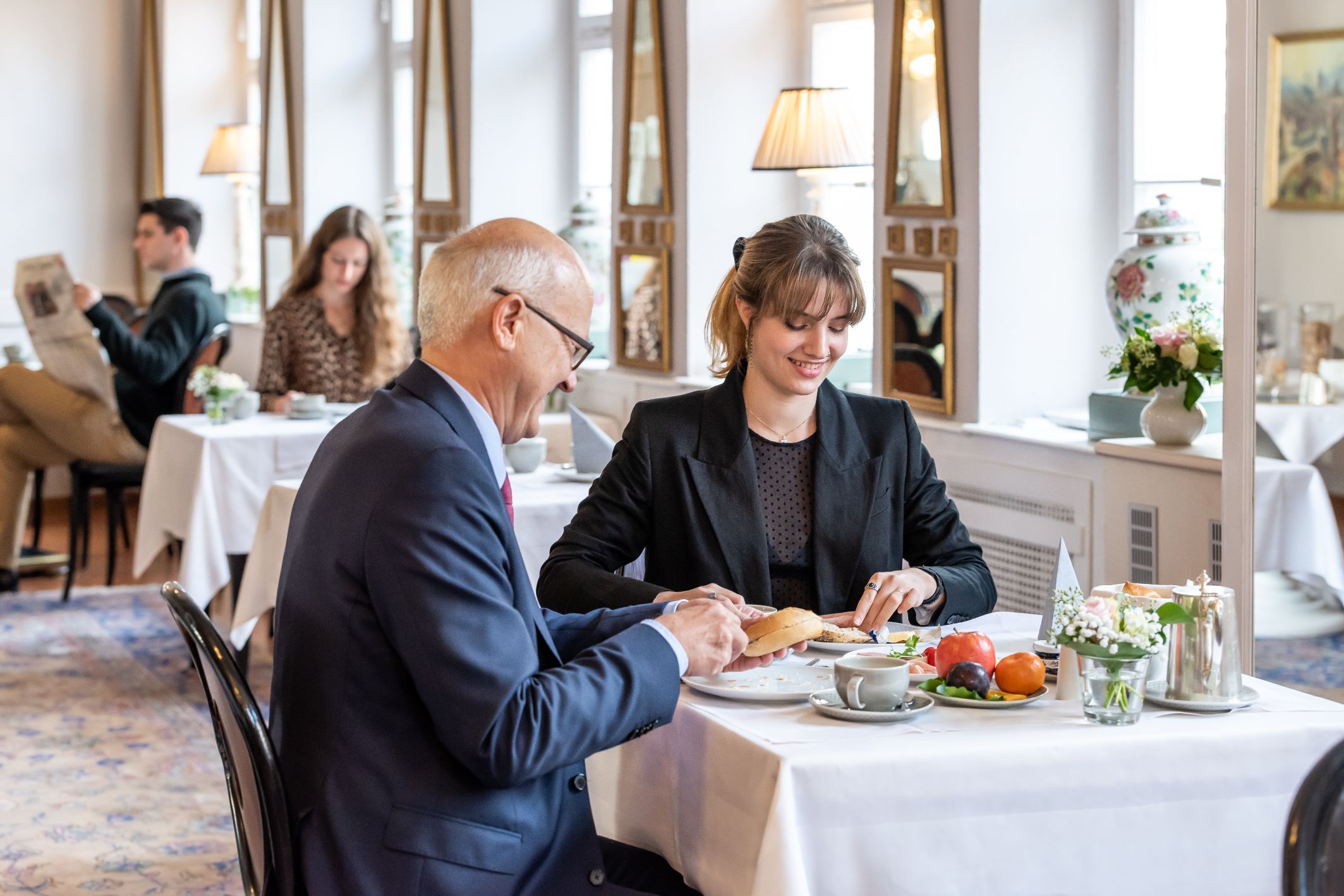 - In unserem stimmungsvollen Frühstückssaal können Sie mit einem reichhaltigen Frühstück vom Buffet entspannt in den Tag starten